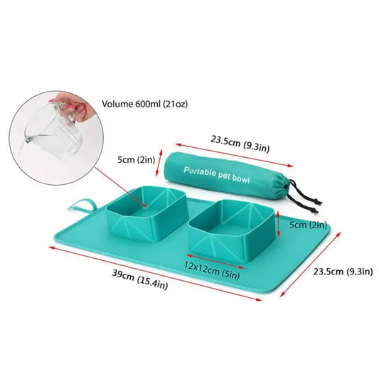 Składana miska dla psa i kota 600ml, silikonowa, z torbą, przenośna miska na jedzenie