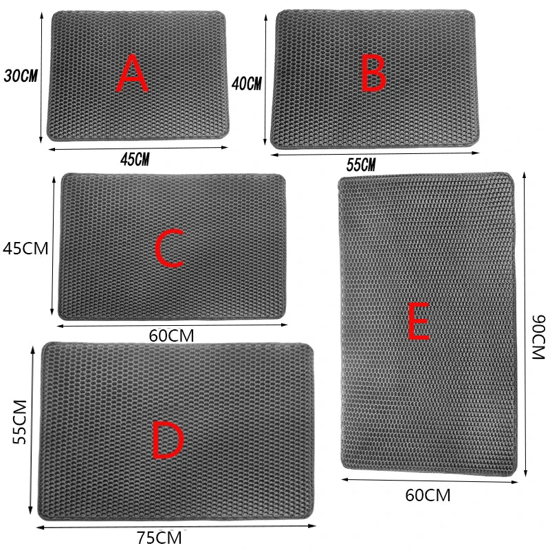 1. It is suitable for more than 95% types of cat litter, the upper layer is through-hole material, cat litter can easily pass through, and the lower layer is waterproof material, cat litter, urine and other dirt can gather here. The cat litter pad is designed with upper and lower layers: the upper layer adopts a hexagonal hole concave and convex design, in addition to preventing cat litter from splashing after falling in, the spherical soft touch can also prevent cats from scratching, and the lower layer is sealed for cats. Sand, the bottom is designed with regular round holes, which is effectively anti-slip to prevent the rampant cat from slipping and getting injured.